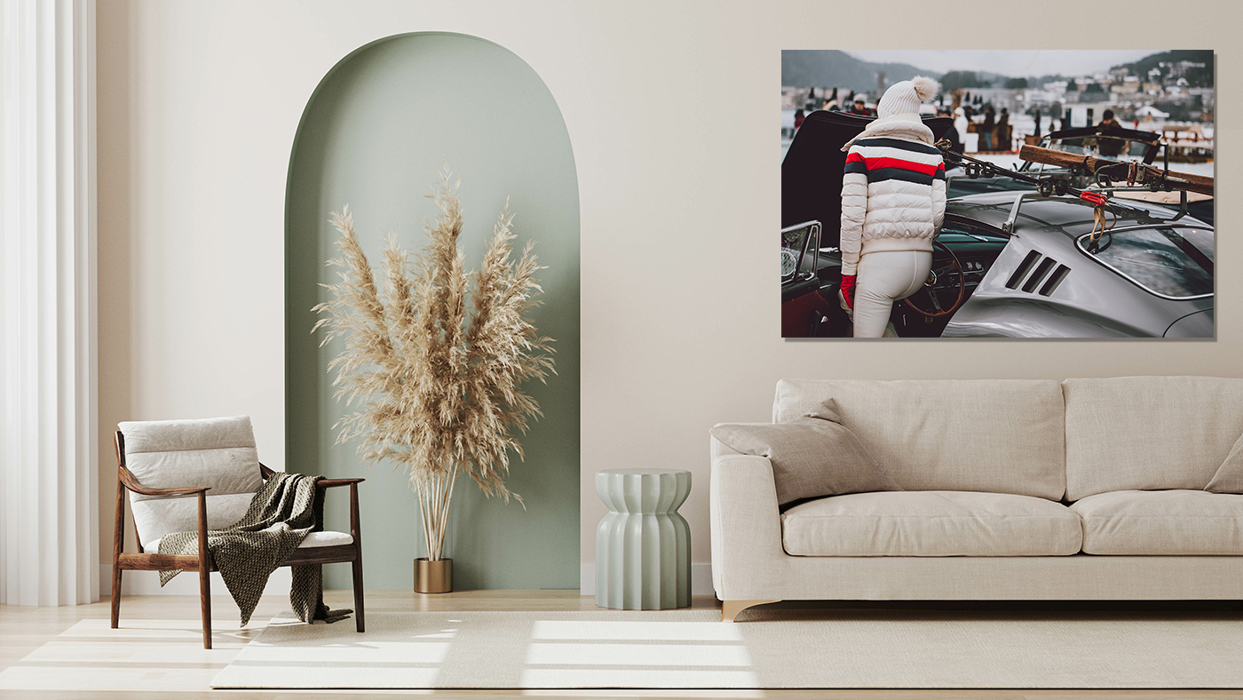 By choosing this exclusive artwork, you integrate a moment of automotive history and alpine elegance into your interior. As a result, you can daily contemplate the spectacular lines of the Ferrari 275 GTB against the backdrop of one of Europe’s most prestigious winter destinations. Moreover, the composition creates a sense of sophistication and timeless style. Meanwhile, these elements together define the essence of European luxury automotive culture.